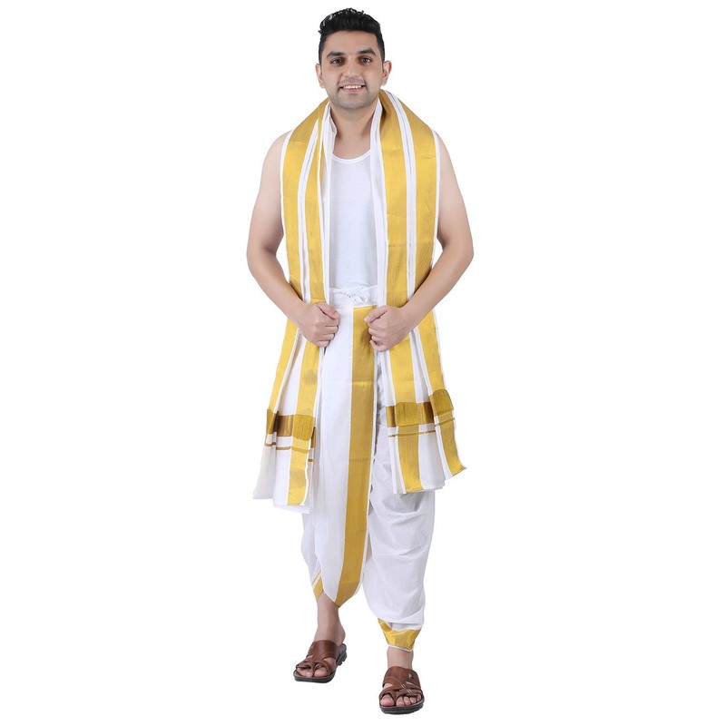 • Ready Made Dhoti Towel set with Pocket ( Panchakacham and angavastram set)