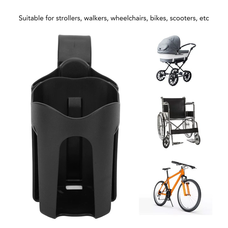- FITS MULTIPLE DEVICES The 2-in-1 cup phone holder is sized to fit most strollers, walkers, wheelchairs, bicycles, trolleys, motorcycles, treadmills and more.
