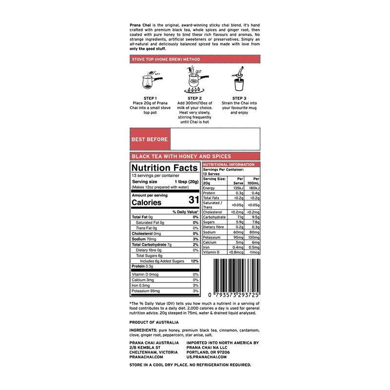 Prana Chai ORIGINAL Masala Blend 250 g - All-Natural, no sugars, no syrups, no concentrates, no preservatives. Only The Good Stuff