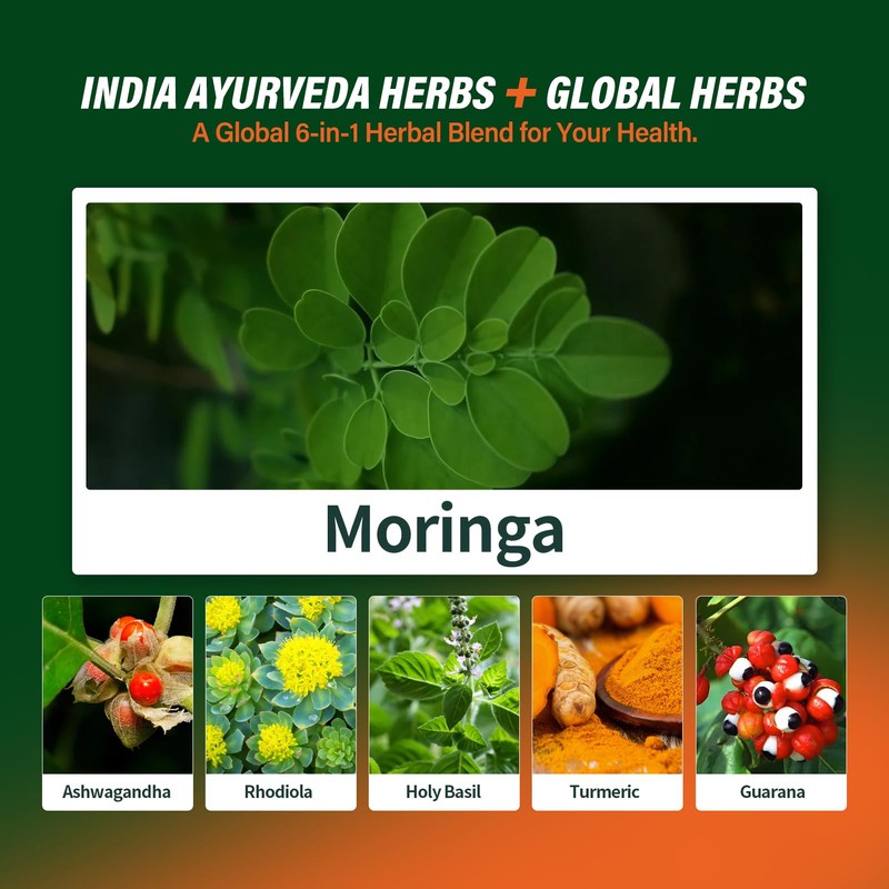 - IMMUNE BOOSTER & FREE RADICAL SCAVENGER:Moringa promotes antibody formation and enhance the body's immune function. Rhodiola and Turmeric effectively improve immunity and support the normal functioning of body functions. Holy basil can help fight free radicals, reduce cell damage and strengthen the body's healthy defense system, promoting overall health.*