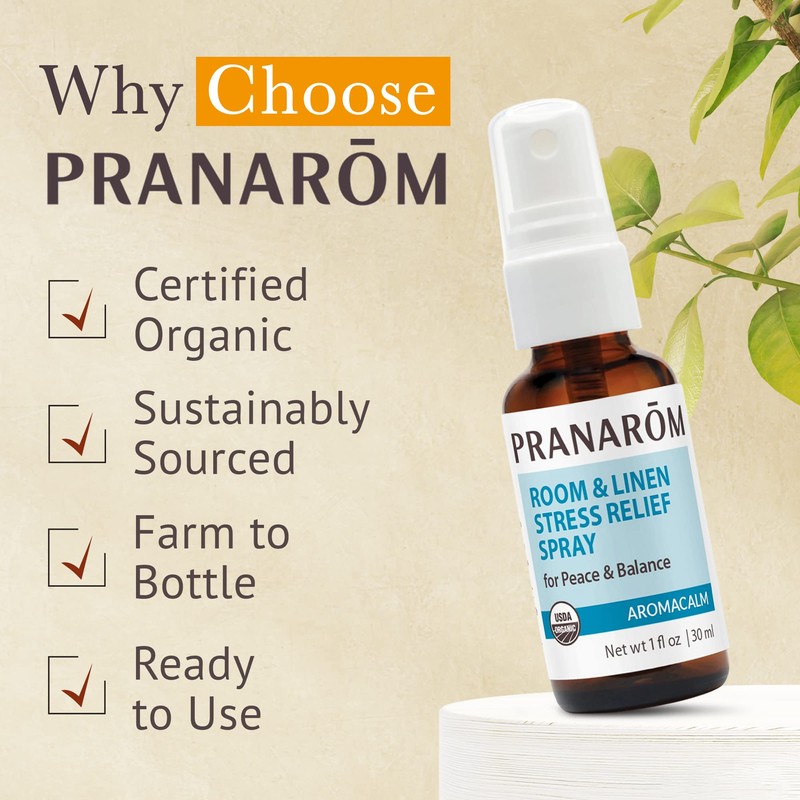 Pranarom - Aromacalm Room & Linen Stress Relief Spray (1oz / 30ml) - Orange, Bergamot, Lavender, Ylang Ylang - Essential Oil for Relaxation and Air Purification|USDA and ECOCERT Certified Organic