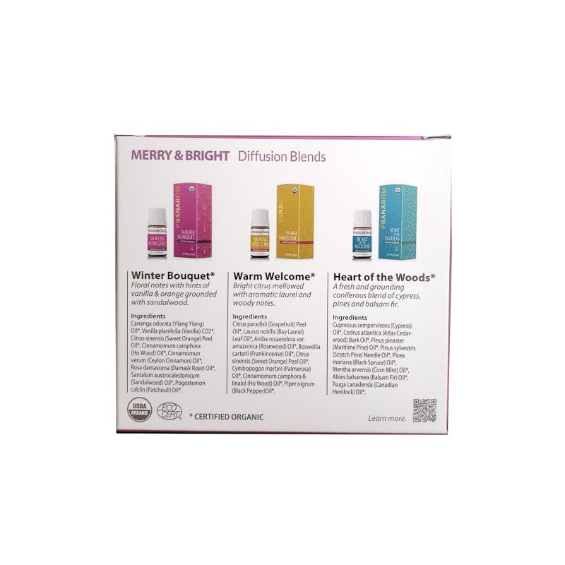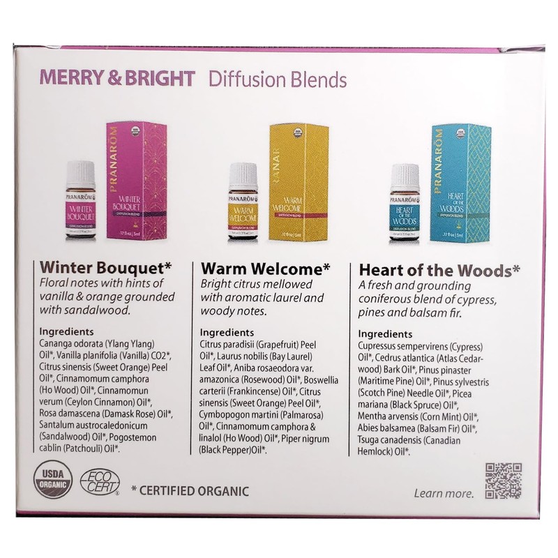 Pranarom Merry & Bright Diffusion Blend, Gift set, 3 x 0.17 Fluid Ounce