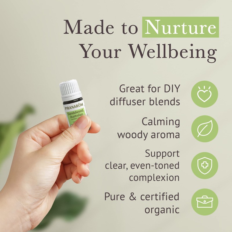 Pranarom Pranarom USDA Certified Organic Australian Sandalwood Essential Oil (5ml), 100% Pure Natural Therapeutic Grade for Home Diffusing, Aromatherapy, Skincare, Candle Making, DIY Perfumes