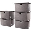 Prandom Extra Large Collapsible Storage Bins with Lids [5-Pack] Linen Fabric Foldable Storage Baskets Boxes Organizer Containers Cube with Cover for Bedroom Closet Office Nursery (22.8x15.75x13.8)
