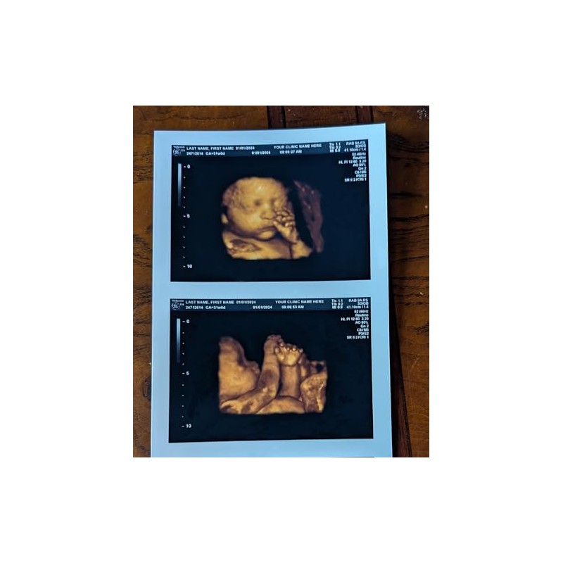 PLEASE READ - 3D ultrasounds aren't typically done prior to 15 weeks as the fetus's are smaller and don't have alot of detail. This ultrasound is intended for gestations of 15 weeks or greater . *****SHIPPING IS MOVING SLOW DUE TO STAFFING SHORTAGES AT POST OFFICE -I am a professional graphic designer selling for 28 YEARS. DON"T Trust your prank to many copycats -Customized for you to pull off the prank COLOR 3D Strip of 2 photos with your custom information -REAL ULTRASOUND PAPER USED -You provide the info for the customization -Photos match the number of weeks you choose -THIS ITEM IS A PRANK ITEM ONLY!!! Can do twins, gender at 15 wks or greater