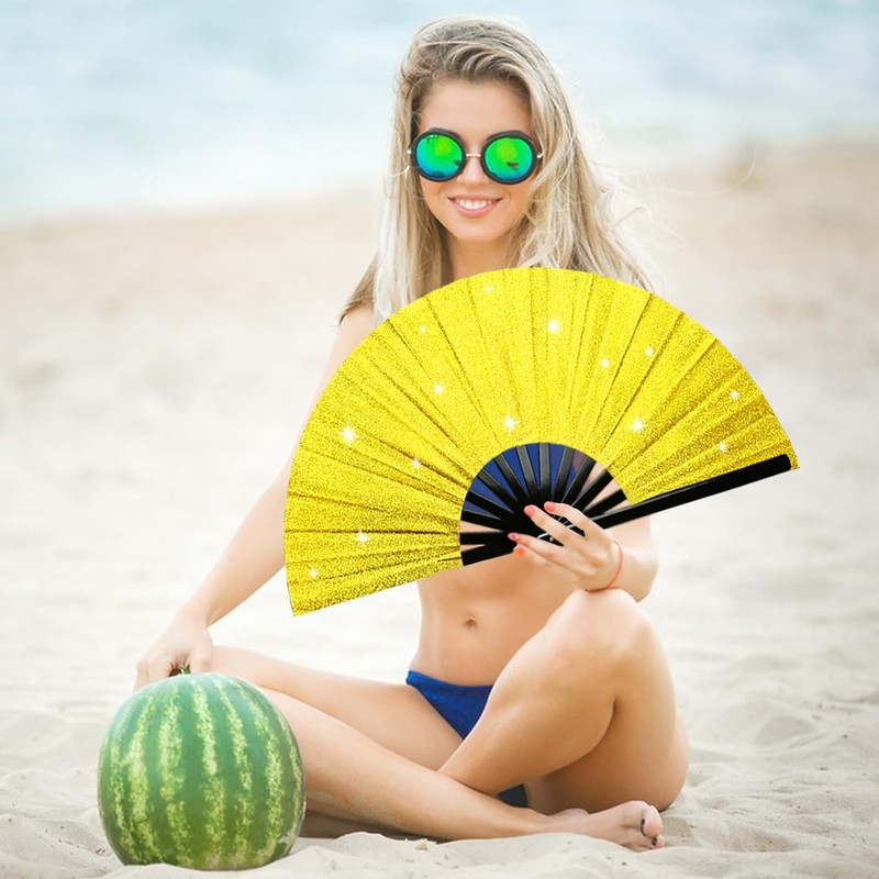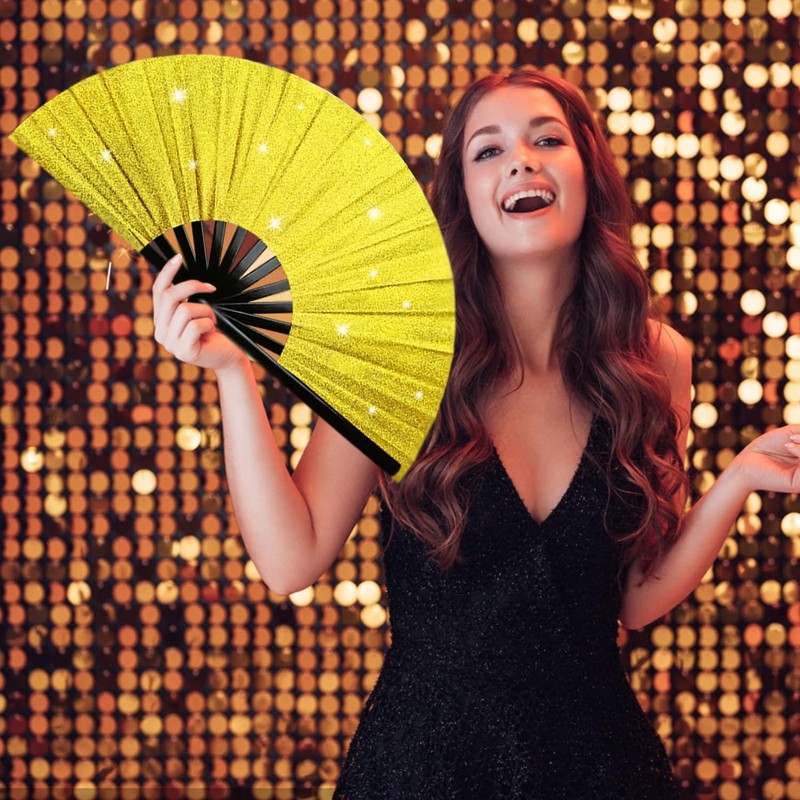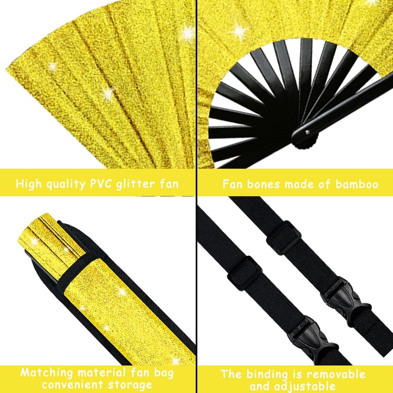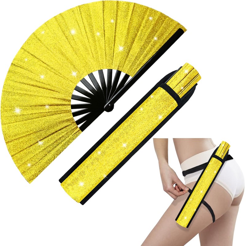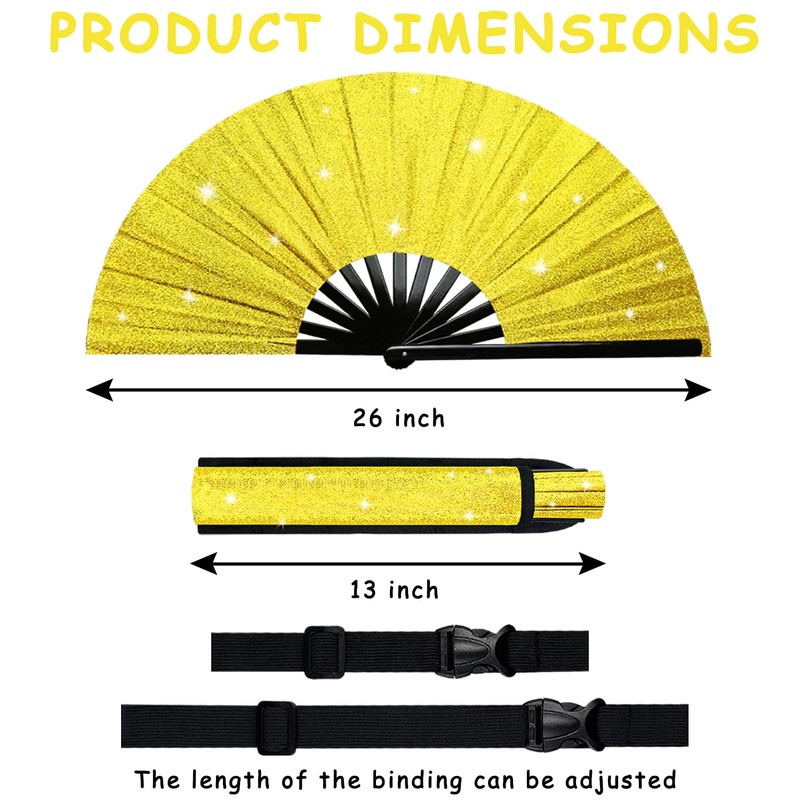 - Multipurpose Truly Shining Folding Hand Fan: Perfect rave hand fan is great for you to rock out at any music festival, rave, dacing party, school play, Halloween, wedding, prom, gay parade or event without worrying about how hot it is. The rave folding hand fans with bamboo ribs are good performance accessories for dressing up your parade costumes, festival costumes and stage performance costumes,Show off your personality with one of these awesome large rave fans. The fans also can be used as wall decoration.