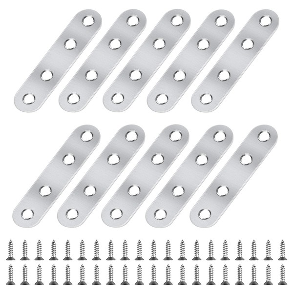 Prasacco 10 Pcs Mending Plates Flat Stainless Steel Straight Brackets with 40 Screws for Furniture Wall Fixing and Corner Brackets - 76×16 mm