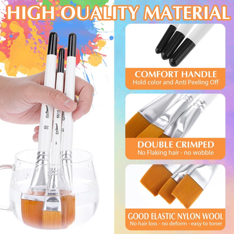 - High-quality bristles: The nylon bristles of the brush are heat-resistant, wear-resistant, flexible, have a strong adsorption force and ensure complete and even colouring. They are suitable for gouache, oil painting, acrylic and other paints.