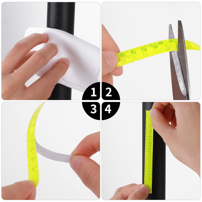 - Waterproof Sun-Resistant Material : The bike reflective tape is made of PVC material, which is waterproof and wear-resistant, and can be used for a long time. Does not fade when exposed to hot sun or heavy rain, and can reflect clearly in the dark and night.