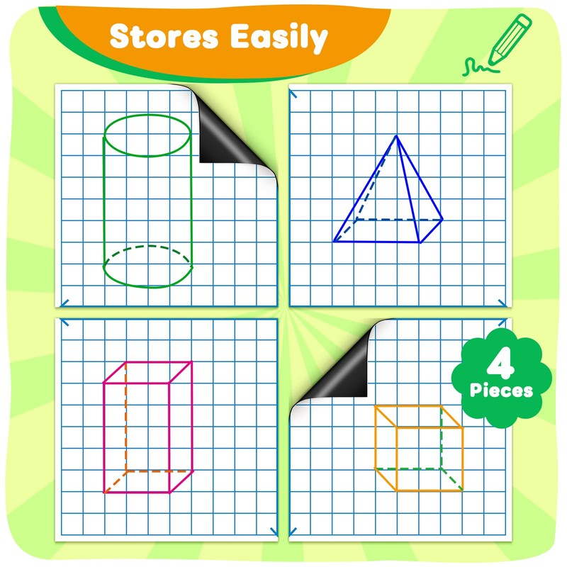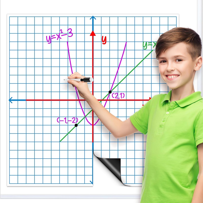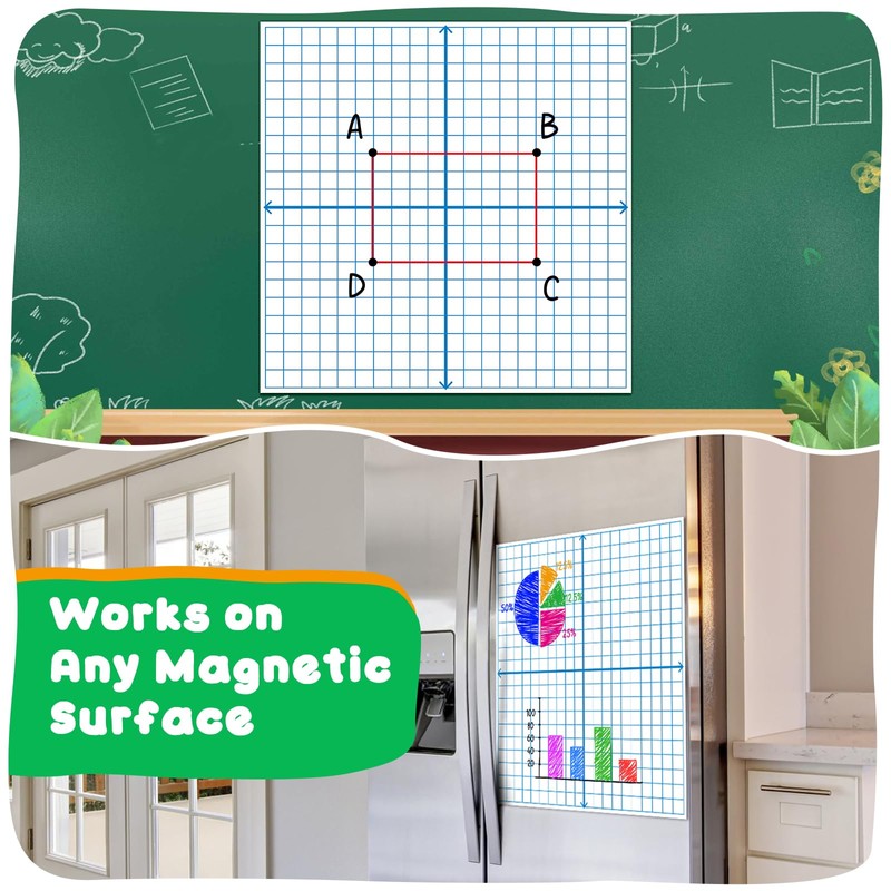 - Large Magnetic Graph Paper Chart: Sized at 26" x 26" and split into four panels, this spacious grid surface gives you ample room for writing or plotting, with clear visibility from across the classroom. Perfect for educators to illustrate math concepts, display written content, or facilitate student interaction with ease.