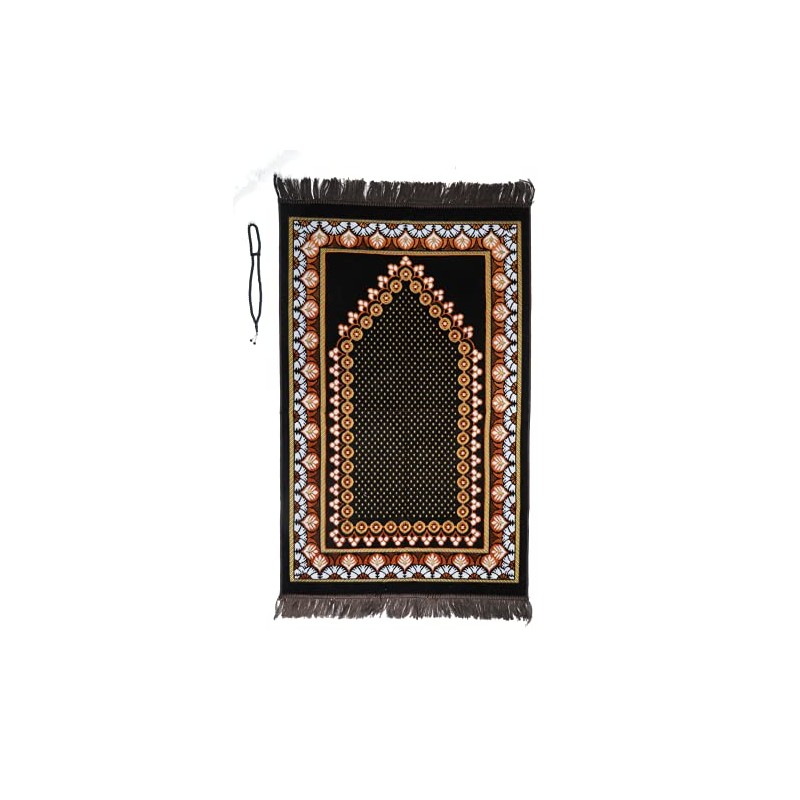Prayer Mat (+ FREE Prayer Beads Tasbih) Islamic Namaz Starry Lightweight soft Muslim Carpet Turkish Janamaz Namaz Sajadah, Ideal for Travel/Home/Office/Masjid/Hajj/Umrah (Dark brown)