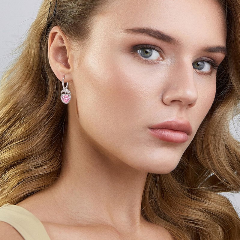 - These heart-shaped earrings exude charm and enchantment, serving as a symbol of the boundless love you hold for your special someone. The meticulously cut CZ stones create a dazzling display of radiance, capturing the light from every angle and casting shimmering reflections that mesmerize.