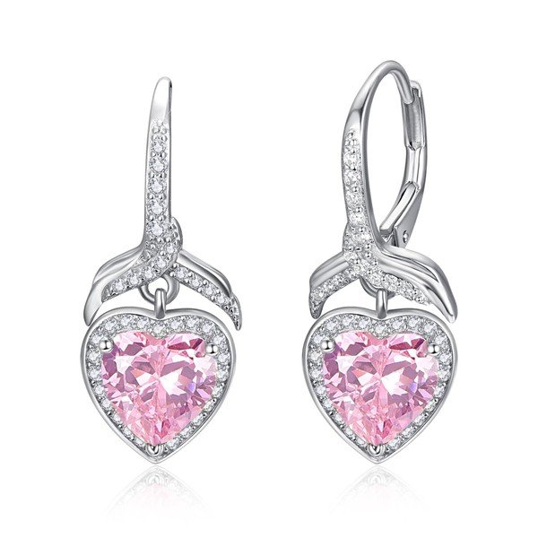 PRAYMOS Pink Heart Earrings for Women Sterling Silver Heart Hoop Earrings October Birthstone Earrings for Women Mother's Day Gifts…