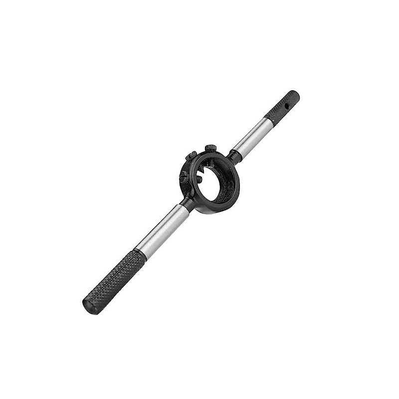 PRAZTECH Stock Holders are high-quality tools designed for cutting external threads with ease. With a rugged steel construction these die holders can handle even the toughest jobs with ease. The heavy-duty set screws hold the round dies firmly in place, providing the user with the confidence they need to get the job done right. The handles have knurled ends with a black powder-coated finish, providing a comfortable grip that won't slip, even when working with oily hands. Get your set today and start creating clean and efficient external threads with ease.