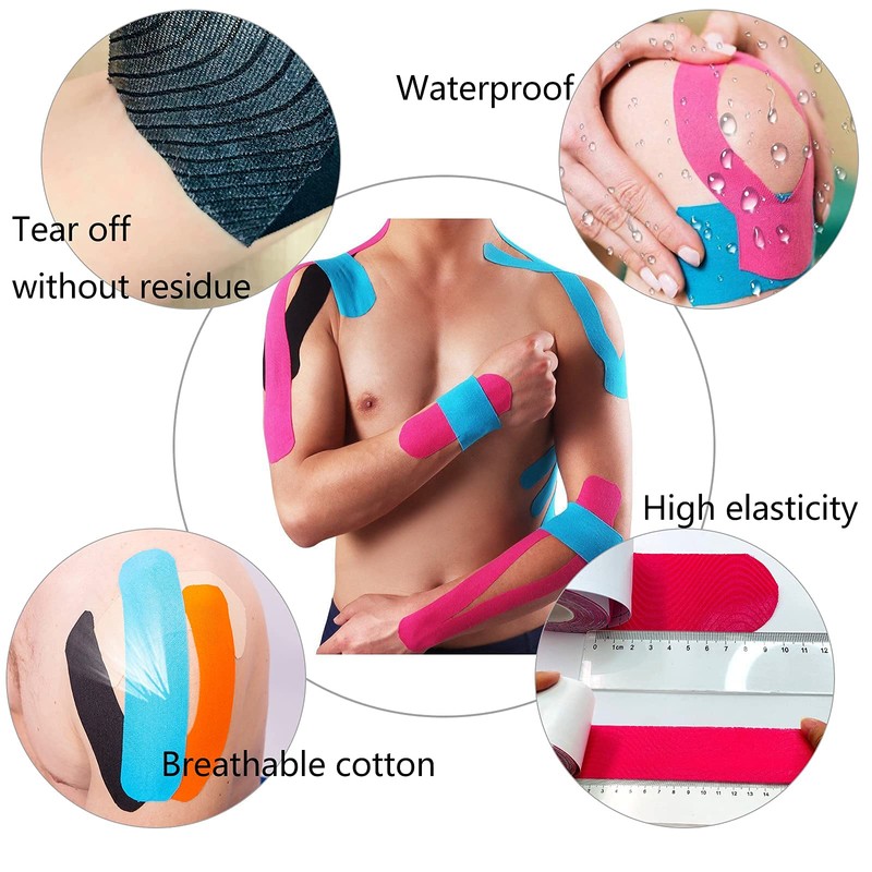 - Perfect Design: Breathable cotton fabric, which can be worn in the shower without removing it. The corrugated rubber surface stretches your muscles comfortably. Kinesiology tape precut does not need scissors, torn off directly by hand for easy use.