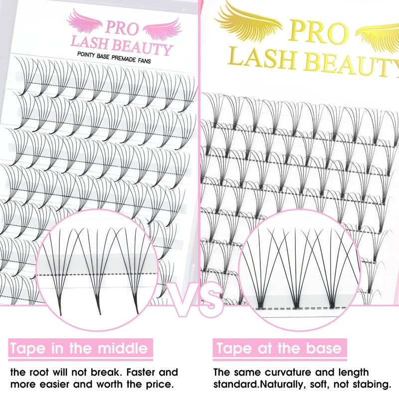 - Invisible Pointy Base : The premade fans with the latest technology would not fall apart when take them off lash strip at the base of the fans. The stickiness of the base would leave no clumps of glue on the strip and match perfect with people’s own lashes.
