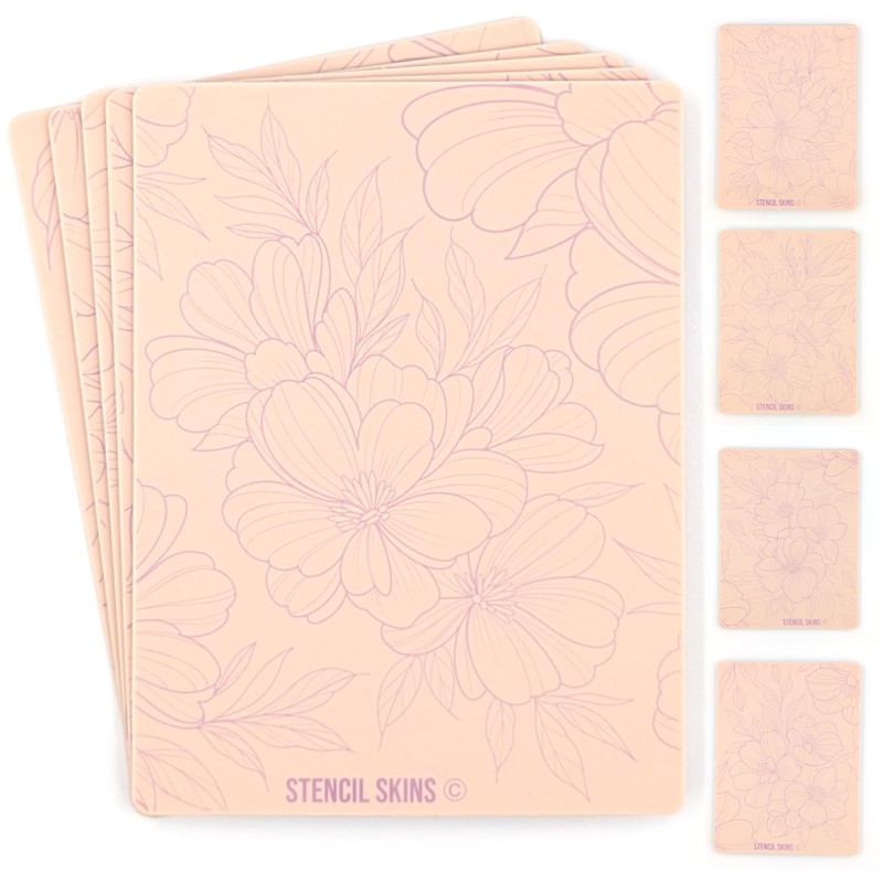 Pre-Printed Tattoo Practice Skins with Stencils | 3mm Fake Skins for Tattooing (5 Pack) | Floral Set