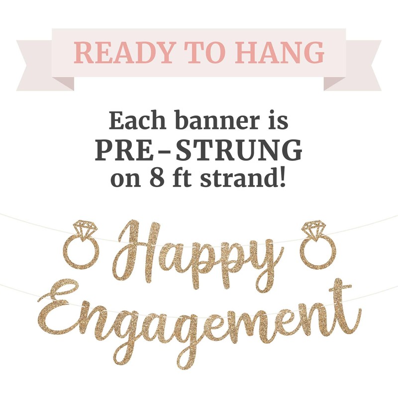 - ☑️ PRE-STRUNG = NO WASTED TIME PUTTING THEM TOGETHER - Unlike others, our gold happy engagement banner will arrive to you with each letter already pre-strung on a 10 ft strand. No DIY required! Perfect for celebrating a she said yes, just engaged moment or honoring the bride-to-be at a bridal shower or wedding engagement party. Just hang it up and let the festivities begin!