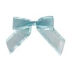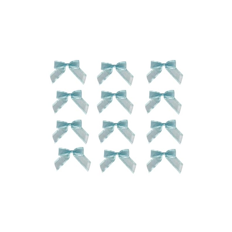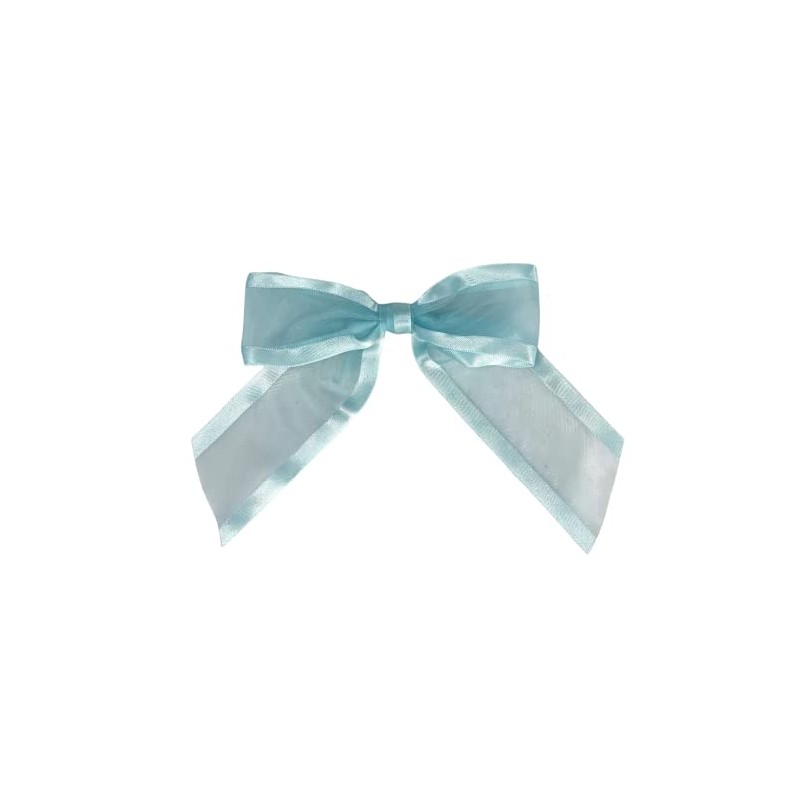 - Ribbon for Gift Wrapping - This set contains 12 Light Blue bows comprised of a 7/8" wide silky satin edge ribbon with a sheer Organza center. Each bow arrives pre tied and ready for use with a bow 4 1/2" wide and hanging tails.