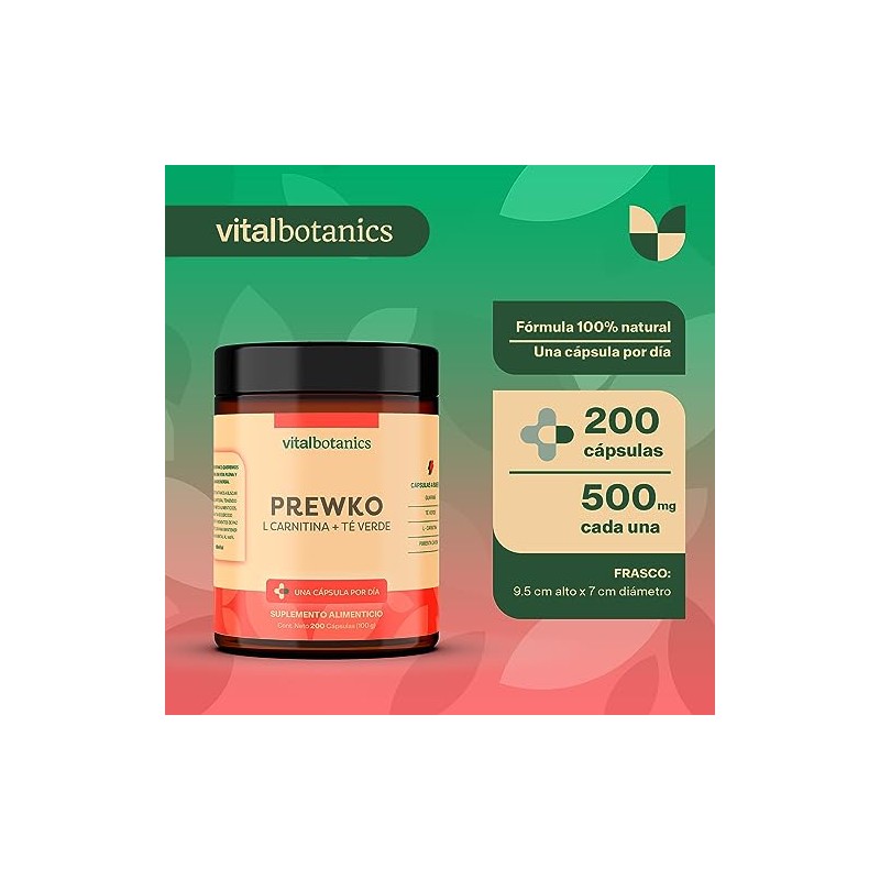 🌟 ⭐ Pre Workout con L Carnitina + Guarana + Te verde + Cayena. 200 capsulas [6 meses]. VitalBotanics. Suplemento Multivitamínico para Deportistas ⭐ 🌟