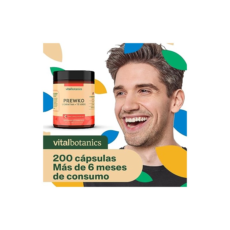 Pre Workout con L Carnitina Guarana Te verde Cayena. 200 capsulas [6 meses]. VitalBotanics. Suplemento Multivitamnico para Deportistas