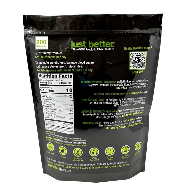 - NO CLUMPING | NO GRIT: Our fiber dissolves completely leaving no clumps, grit, or taste. Add just better. prebiotic fiber to any hot or cold food or beverage, including wine and cocktails. It’s an easy way to incorporate more unflavored soluble fiber in your diet without changing the taste of your favorite foods and beverages.