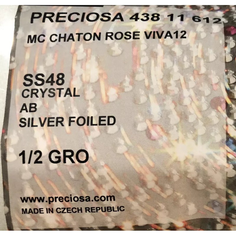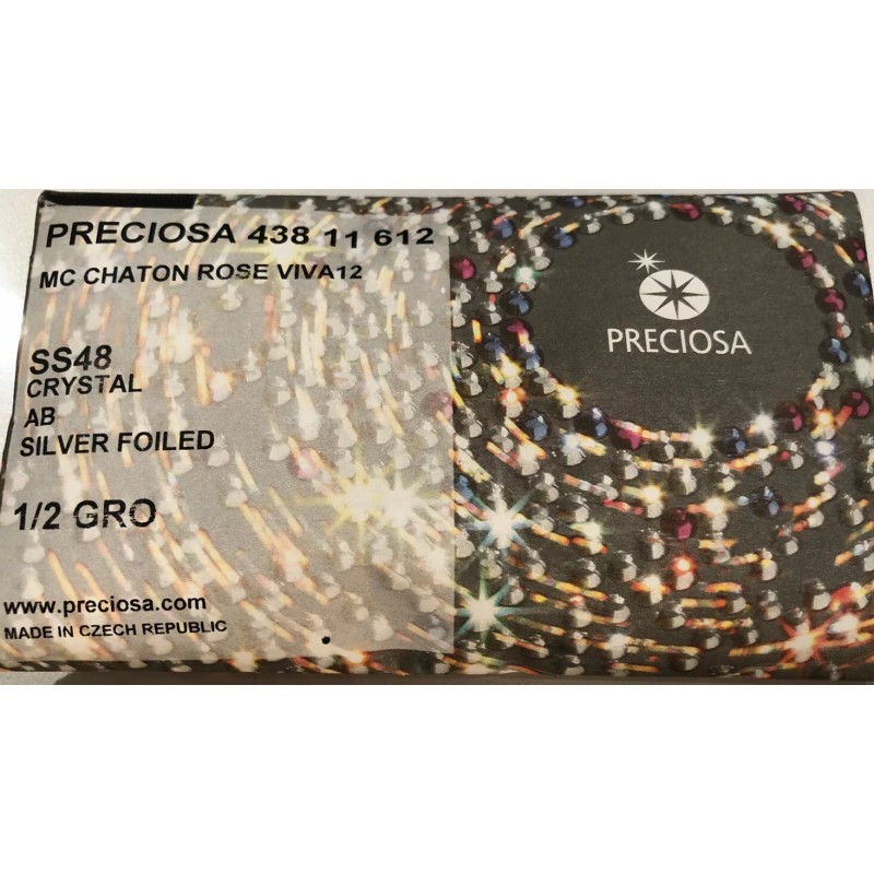 PRECIOSA 1/2 GROSS (72 PCS) CRYSTALS CZECH PRECIOSA VIVA12 SS48 CRYSTAL AB SILVER FOILED