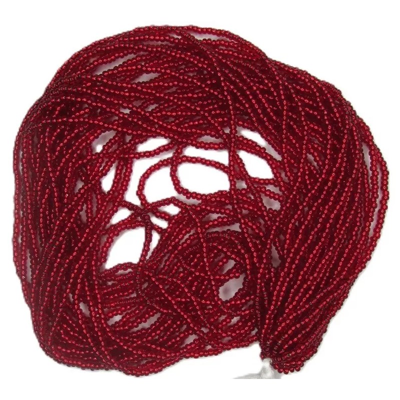 three 12-strand hanks, each strand is about 20 inches, with about 4500-5000 beads per hank, approximately 38-40 grams.