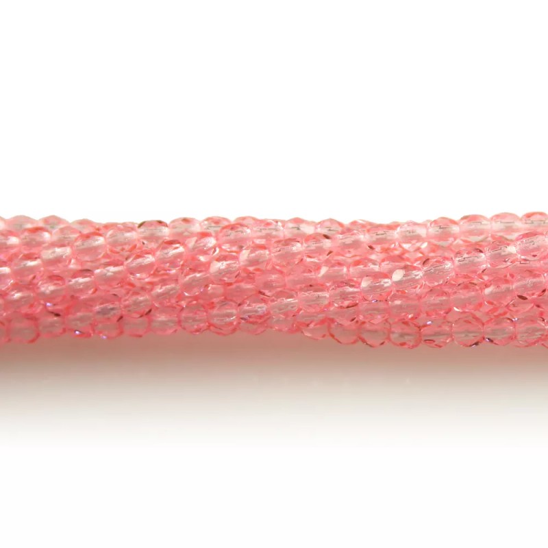 PRECIOSA Light Pink Coated - 50 4mm Round Faceted Czech Glass Fire Polish Beads