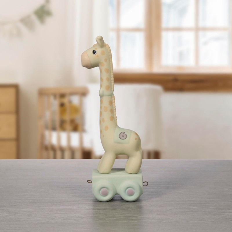 As a sweet youngster celebrates six special years, this long-necked friend encourages them to keep looking up and to always aim high. Part of the Precious Moments Birthday Train, both ends of this piece connect to other figurines in the series helping to honor all their birthdays from birth to 16 years. Meticulously hand painted and crafted of fine bisque porcelain, it is the perfect birthday gift for any six-year old – a 6th birthday present that will never be forgotten! Approximately 5.5 inches high.