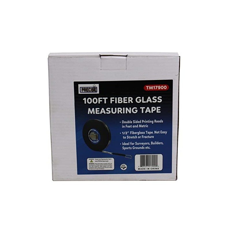 PRECISE 100 Foot (30.5m) Fiberglass Tape | ½ (1.3 cm) Wide | Ideal for Sports Fields, Construction, Road Crews | Quick Rewind Mechanism | All-Weather Durability