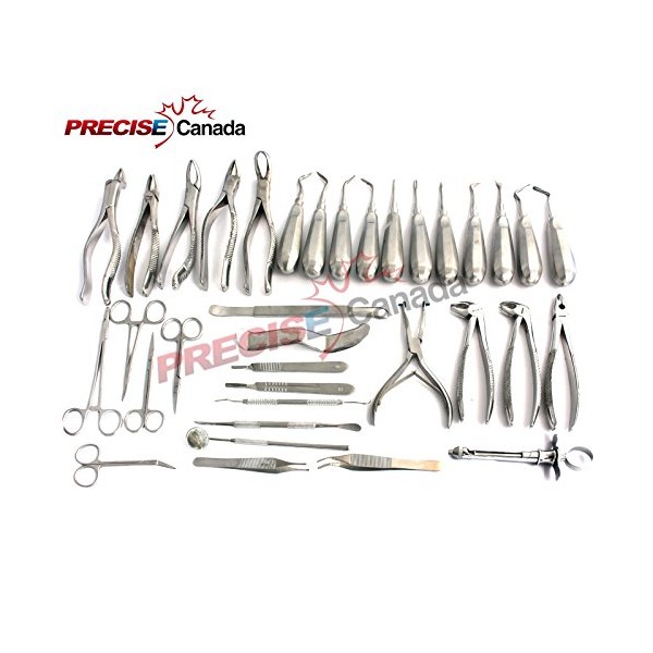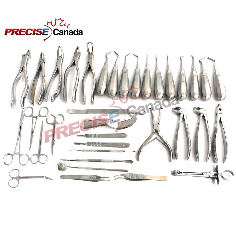 PRECISE CANADA: Set of 35 Pieces Dental Extraction EXTRACTING Elevators Forceps Stainless Steel