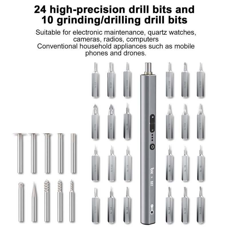 24 high-precision drill bits and 10 grinding/drilling drill bits: Suitable for electronic repairs, quartz watches, cameras, radios, computers, mobile phones, drones and other regular household appliances.