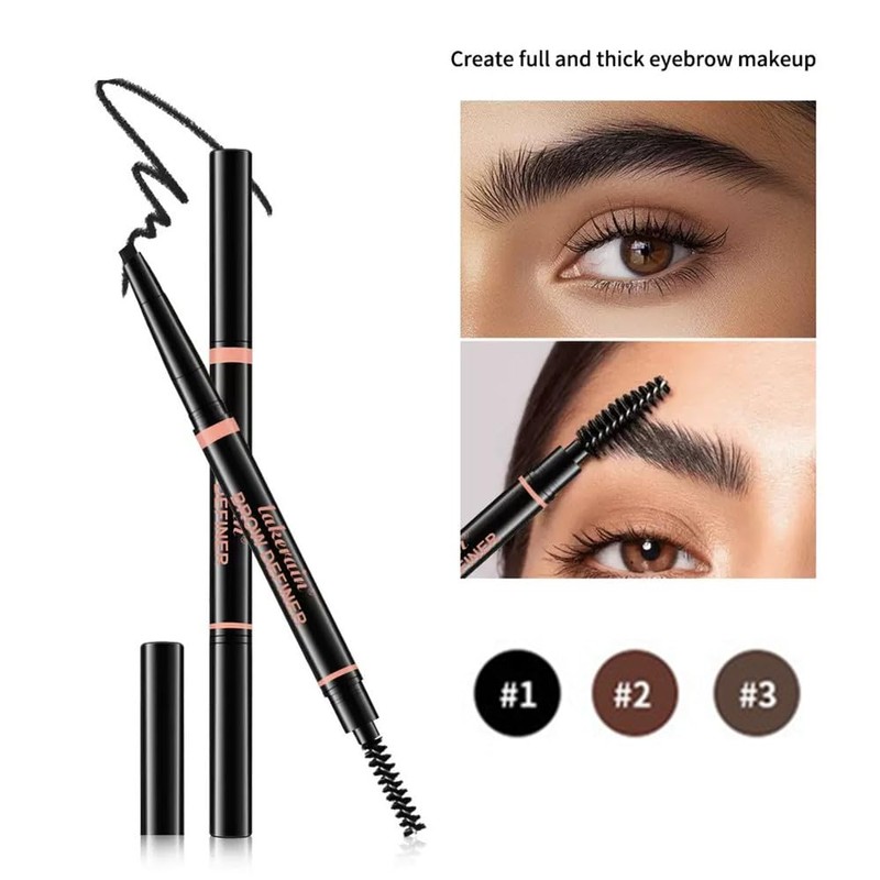 - There is a triangular tip at one end, a unique angular pen design; There is a built-in spool brush at the other end to precisely contour the eyebrows