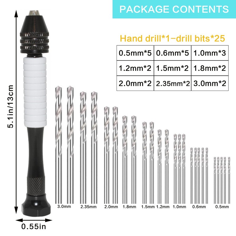 Precision Hand Drill Kit with 25 Micro Drill Bit Set,Pin Vise Hand Drill, Resin Hand Drill, Micro Drill, Mini Drill Bit Set for Hand Drill for Jewelry Making, Crafts, DIY Projects