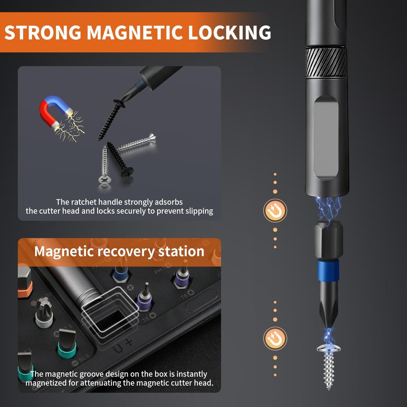 - 【Magnetic Design】Magnetic screwdriver set all drill bits are strongly magnetized to ensure quick and easy replacement of the drill bits while firmly securing the screws in place. Ensure that the batch head does not fall off according to various usage environments, making you more efficient when assembling small tools, cars, or repairing work.