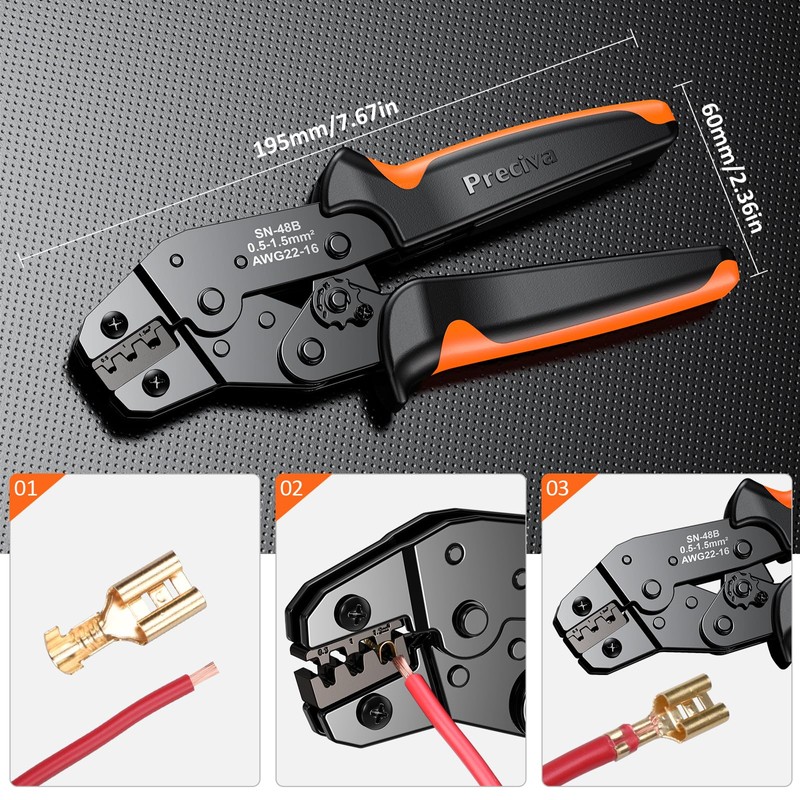 - 【Quality Tool Set】--Preciva spade crimping pliers set with a crimping range of 0.5-1.5mm², suitable for 2.8mm/4.8mm/6.3mm spade connectors. Made of high quality materials, have good crimping effects and long service life.