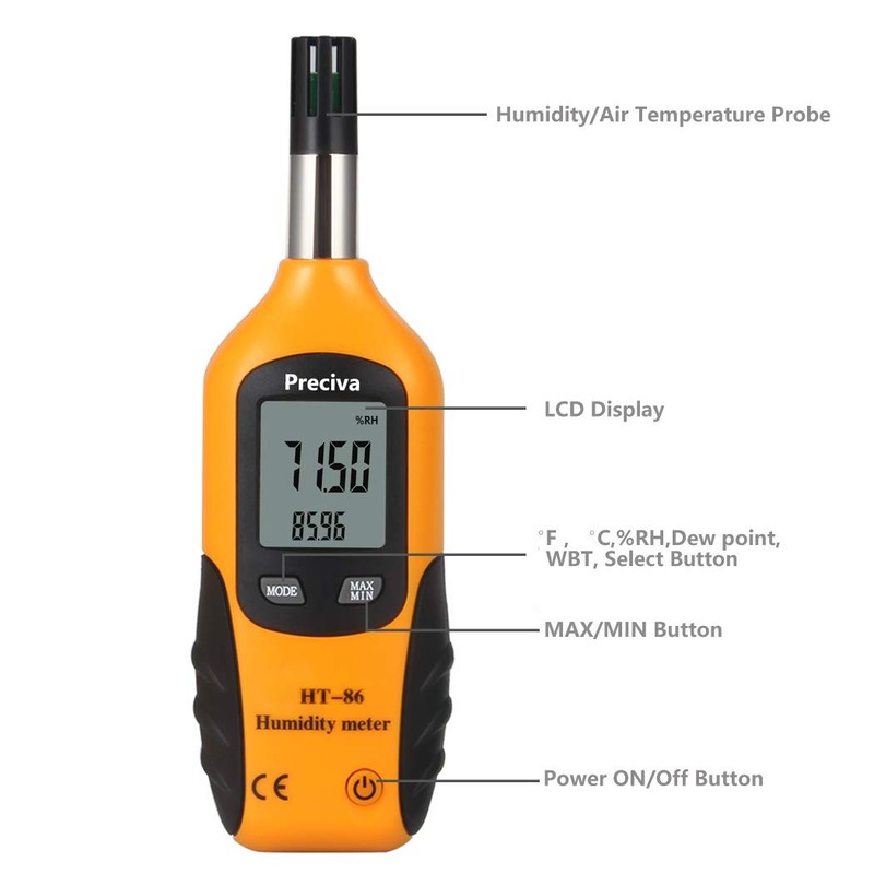 • [2 in 1 FUNCTIONs] -- This digital Humidity & Temperature Meter & Wet Bulb Temperature Dewpoint Temperature is designed to combine the functions of humidity meter, temperature meter, wet bulb temperature and dewpoint temperature.