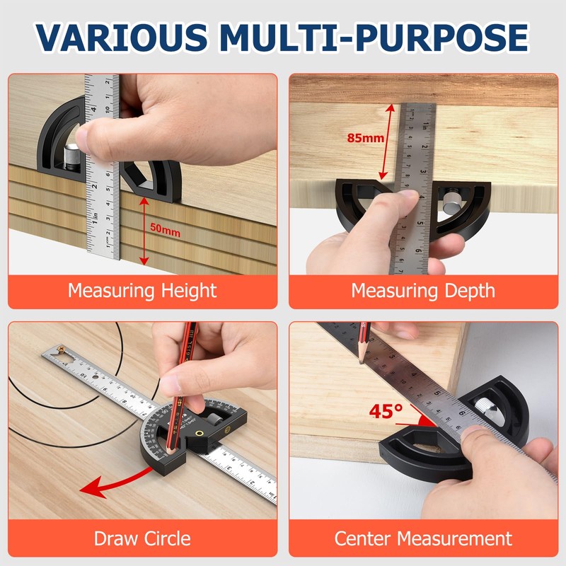 • [Quality Materials]---- Made of metal steel ruler and ABS angle finder.