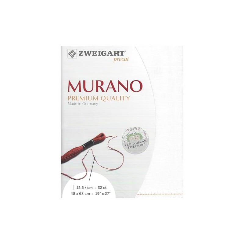 • Package contents: Zweigart Murano Canvas 32 count, bleached 52% Cotton, 48% Viscose. Dimensions 48*68 cm / 18.9*26.77 inches.