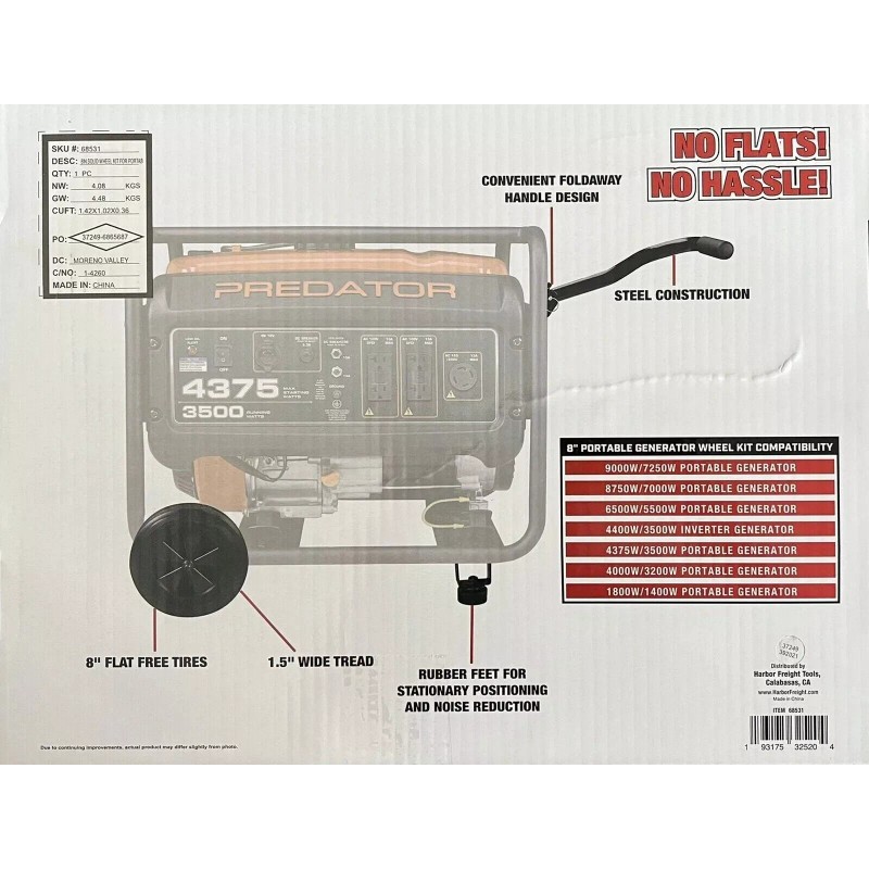 Predator 8 in Never-Flat Generator Wheel Kit for 4000 to 9000 Watt Predator Generators