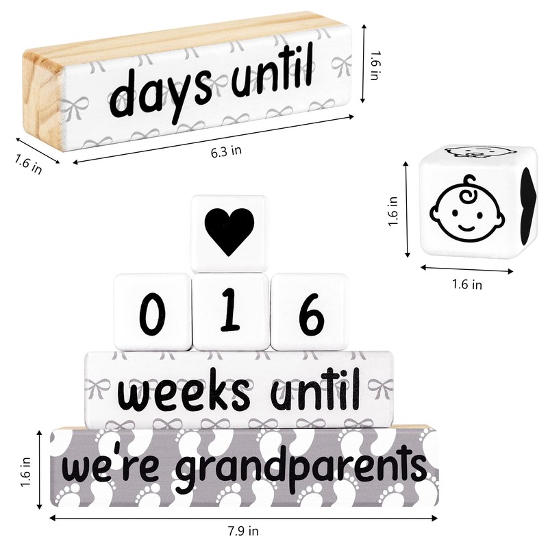 - Our adorable new baby countdown blocks are made with high-quality and time-tested materials, which are carefully handcrafted to perfection. Choosing these wooden blocks as an expecting grandma & grandpa gift is a touching way to honor and celebrate the special bond between grandparents and their grandchild, making it a meaningful gesture that they will cherish forever.