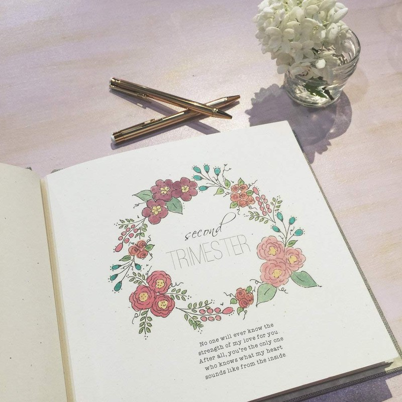Pregnancy Journal, Diary and Planner for Expecting Mothers. Floral Wreath. Beautiful and Unique Gift for Moms