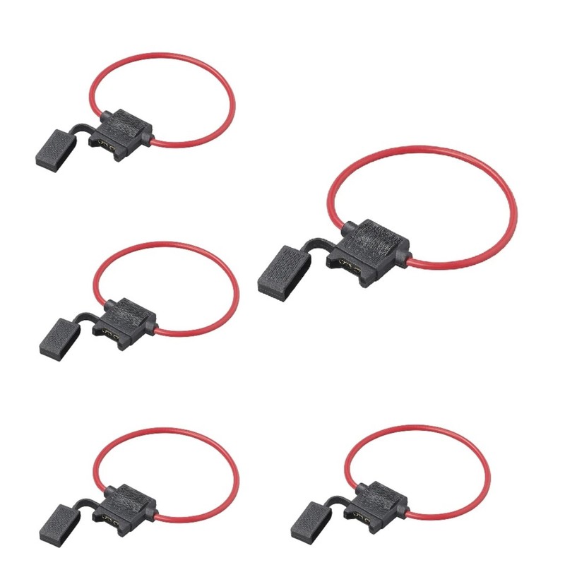 Preiswert&Gut 5 x Car Fuse Holder 12 V with Surge Protection - Fine Fuse Holder 2 mm² Wire Diameter, 250 mm Cable Length, Blade Fuse Holder 30 A