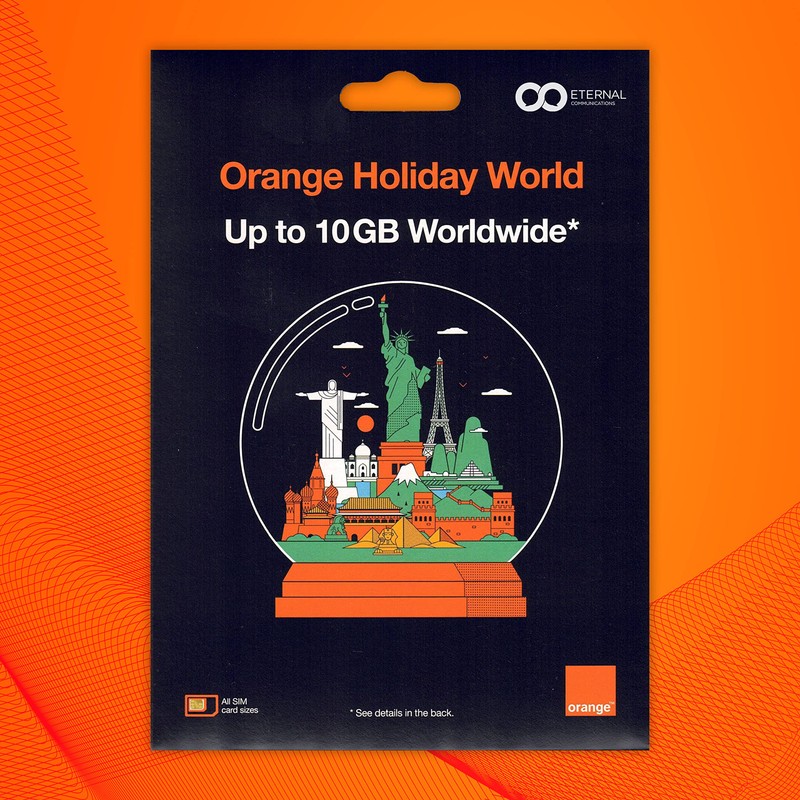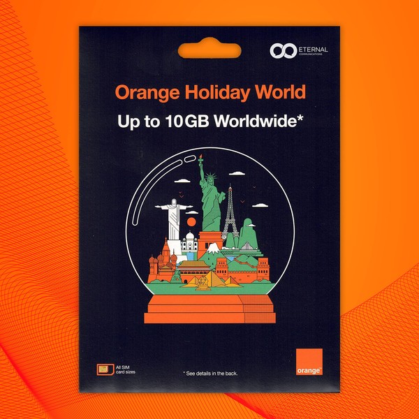 Preloaded Orange Travel Sim Card with 10GB of 4G Worldwide Data. Use in 139 Countries. (Lasts for 14 Days). Tethering Allowed