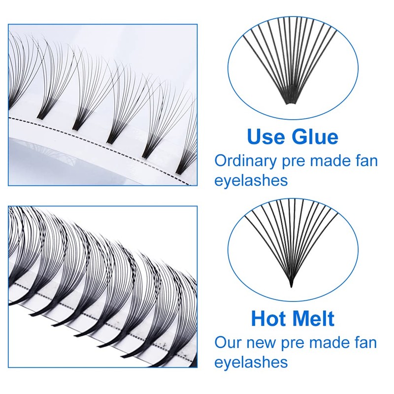 - 【Natural Looks】Wendy Lashes pre made fans russian lashes are matte black with nature looking. 0.07mm thickness are very close to human eyelashes. And the root of the pre made russian lashes are made by a hot melt process,the roots are thinned to be use for extensions.