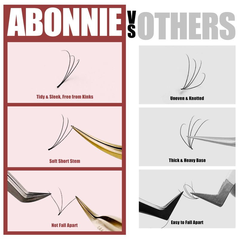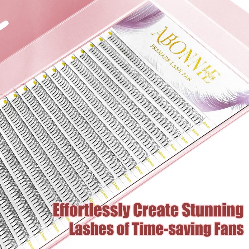 - 【Short Stem & Not Fall Apart】ABONNIE premade fans manufactured with state-of-the-art technology, the unique double-heated bonding method ensures that the lash fans won't fall apart when you pick the fans up or pick up the lash strip. The lash fans for eyelash extensions has point base, no foreign body sensation in the eye, better fit to your natural lashes.