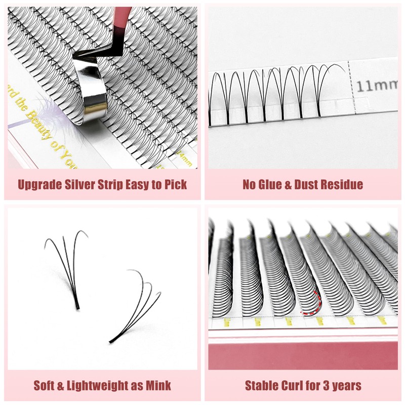 - 【Stable Curl & No Kink】ABONNIE use professional physical and high temperature double heating to ensure stable curl that premade fans eyelash extensions can keep the perfect curl for about 3 years, and will not lose the curl easily. There pre made fans are no glue residue and no kink on the lashes.