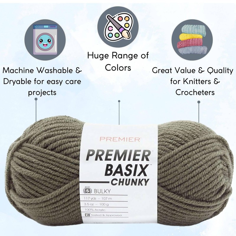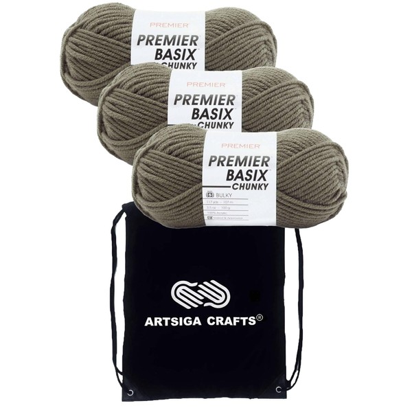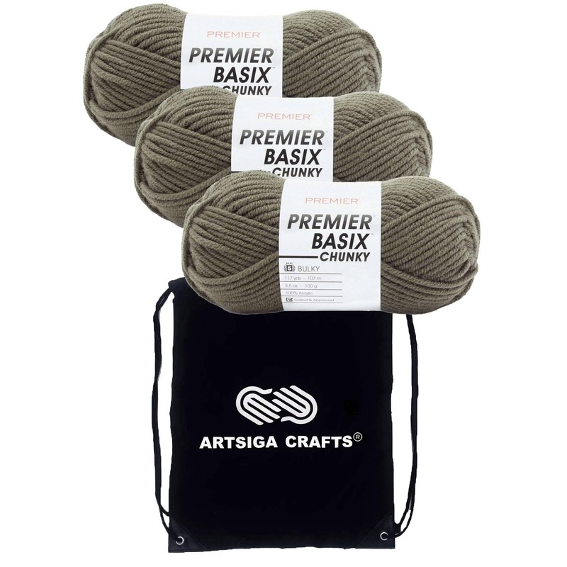 - Bundle includes Premier Basix Chunky Yarn Lichen 1145-35 (3-Pack) Chunky Bulky #5 Soft 100% Acrylic Bundle with 1 Artsiga Craft Project Bag