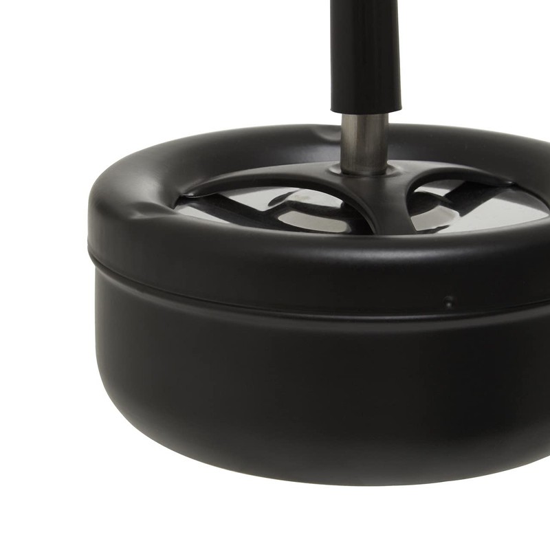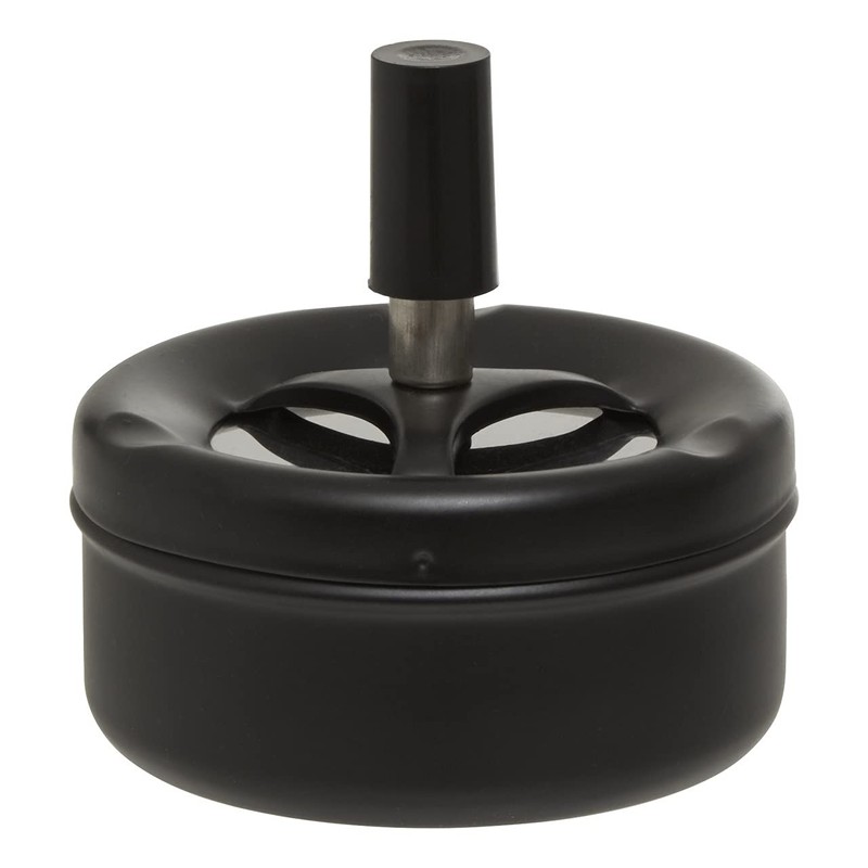 - Convenient design, matte black finish ashtray will look great at the centre of your table a you simply push to open, dispose and release to seal.